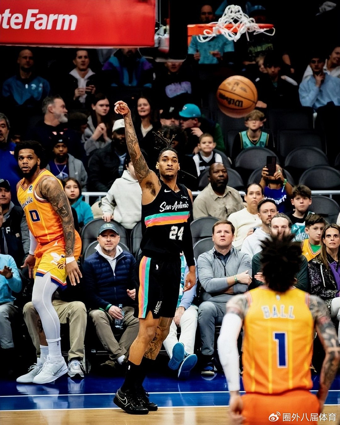 灰熊也是一支强硬的球队,而马刺赛前稳居西部第二,赛后被掘金反超跌至第三。但马刺战绩若放在东部足以排第二。可即使如斯强势的马刺,在黄蜂主场仍被完全压抑。角逐进程也是跌荡放诞升沉,首节马刺外线手感火热,前六记三分全数射中,一度成立领先,看起来是顺风顺水。但黄蜂利害的处所是,他们的火力能敏捷回应,榜眼布兰登米勒和焦点拉梅洛鲍尔联手还击,内线迪亚巴特也屡次强硬终结。两边你来我往,马刺以30-26小胜首节,但黄蜂已有起势的感受。